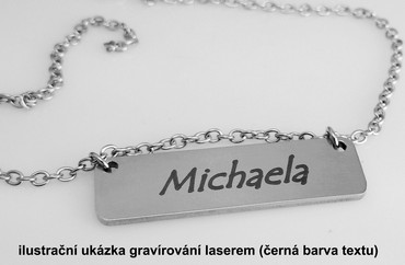 Ocelový přívěsek s vlastním textem, případně vybraným motivem vyrobený z chirurgické oceli 316L. Žádný potisk nebo nálepka, ale diamantem nesmazatelně vryt váš text.